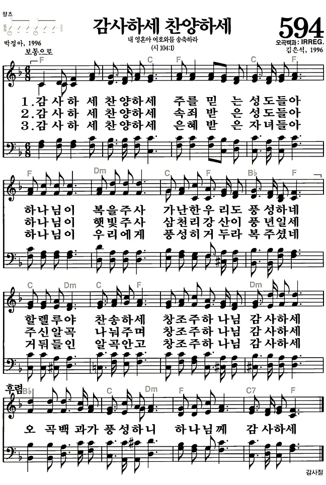 새찬송가_악보] 594장 - 감사하세 찬양하세 다운로드(고화질/인쇄용)