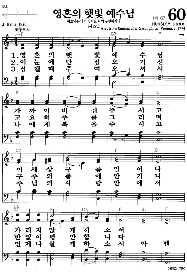 새찬송가_악보] 60장 - 영혼의 햇빛 예수님 다운로드(고화질/인쇄용)