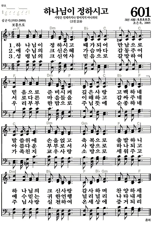 새찬송가_악보] 601장 - 하나님이 정하시고 다운로드(고화질/인쇄용)