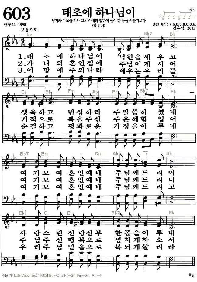 603장 - 태초에 하나님이 찬송가의 고화질 악보입니다.
