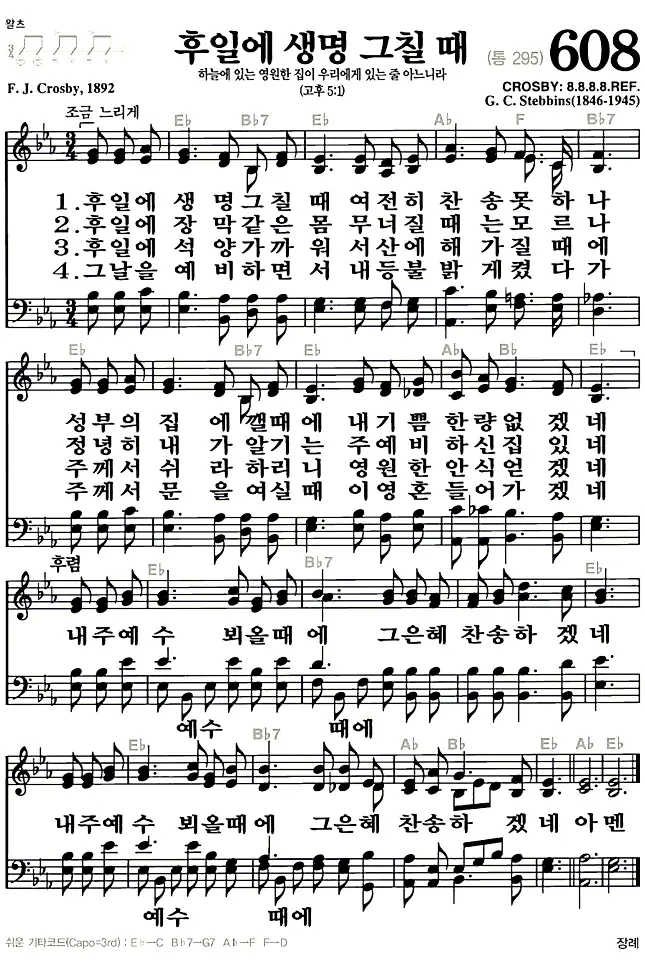 새찬송가_악보] 608장 - 후일에 생명 그칠때 다운로드(고화질/인쇄용)