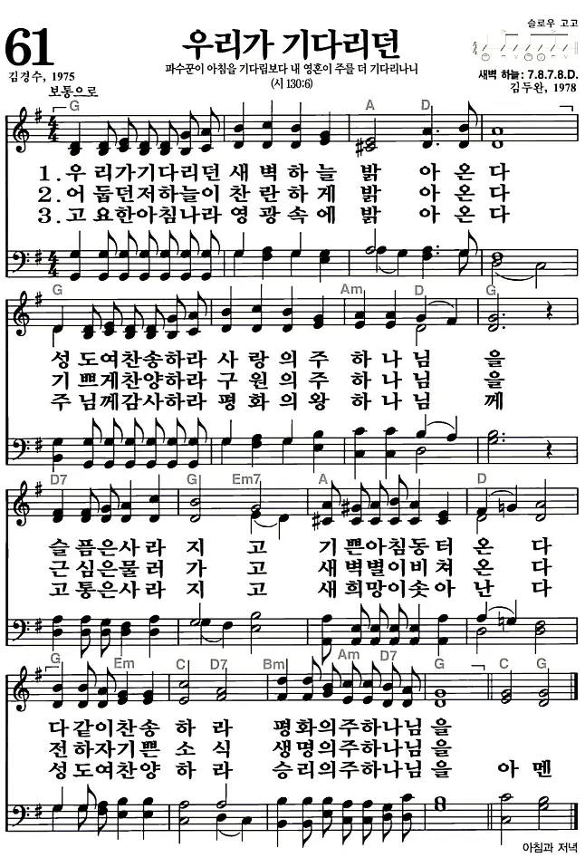 새찬송가_악보] 61장 - 우리가 기다리던 다운로드(고화질/인쇄용)