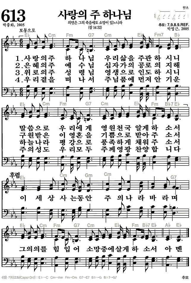 새찬송가_악보] 613장 - 사랑의 주 하나님 다운로드(고화질/인쇄용)
