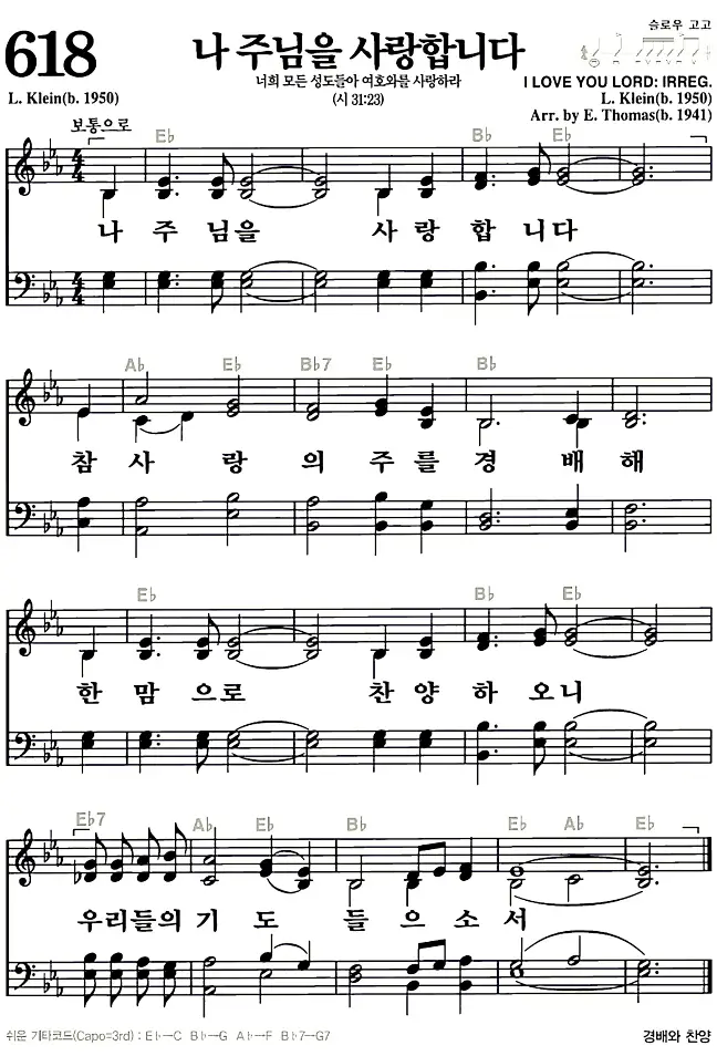 새찬송가_악보] 618장 - 나 주님을 사랑합니다 다운로드(고화질/인쇄용)
