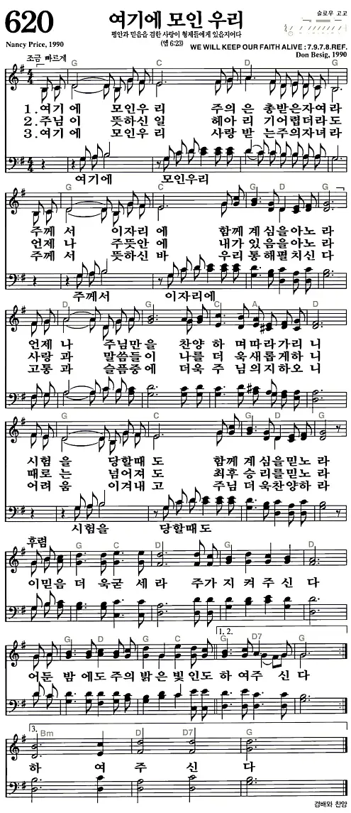 620장 - 여기에 모인우리 찬송가의 고화질 악보입니다.
