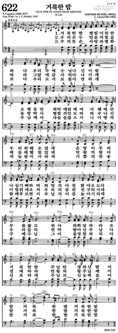 622장 - 거룩한 밤 찬송가의 고화질 악보입니다.