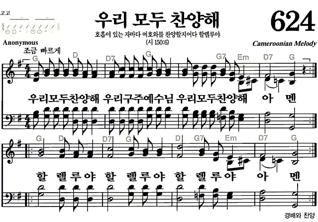 새찬송가_악보] 624장 - 우리 모두 찬양해 다운로드(고화질/인쇄용)