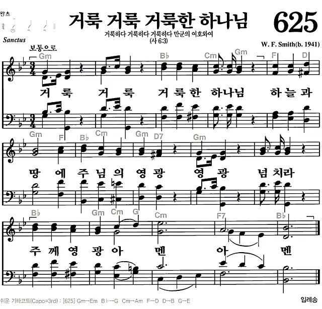 새찬송가_악보] 625장 - 거룩 거룩 거룩한 하나님 다운로드(고화질/인쇄용)