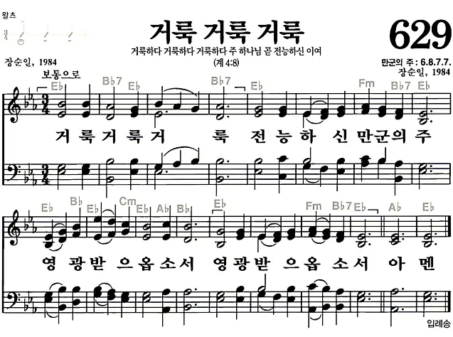 새찬송가_악보] 629장 - 거룩 거룩 거룩 다운로드(고화질/인쇄용)