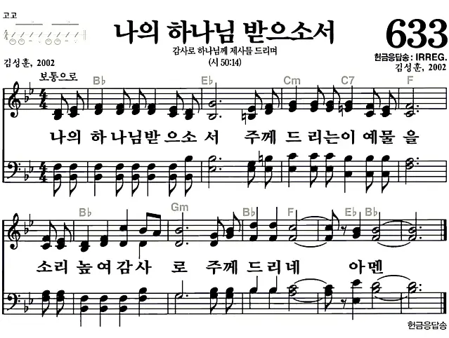 633장 - 나의 하나님 받으소서 찬송가의 고화질 악보입니다.