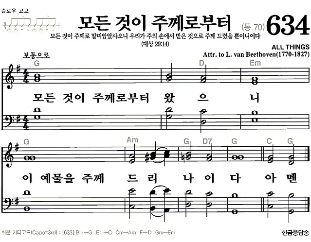 634장 - 모든것이 주께로 부터 찬송가의 고화질 악보입니다.