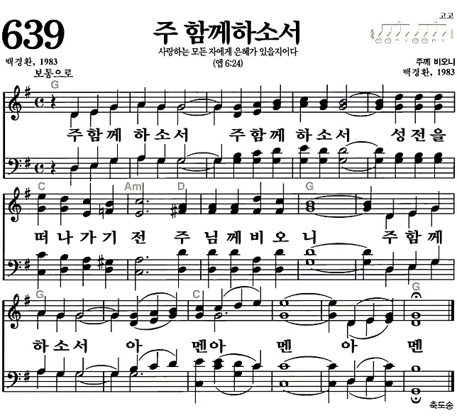 새찬송가_악보] 639장 - 주 함께 하소서 다운로드(고화질/인쇄용)