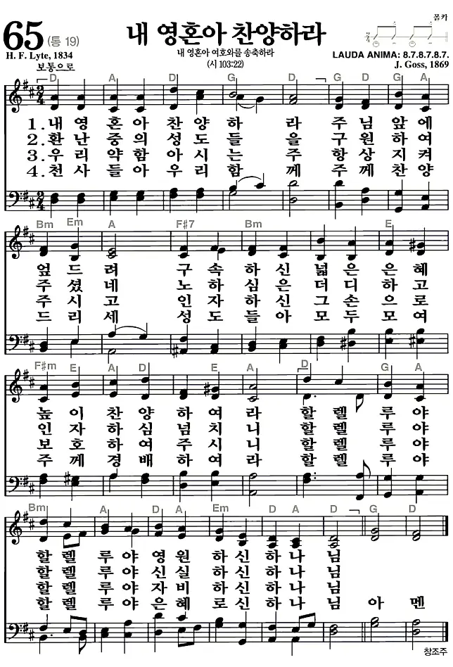 새찬송가_악보] 65장 - 내 영혼아 찬양하라 다운로드(고화질/인쇄용)