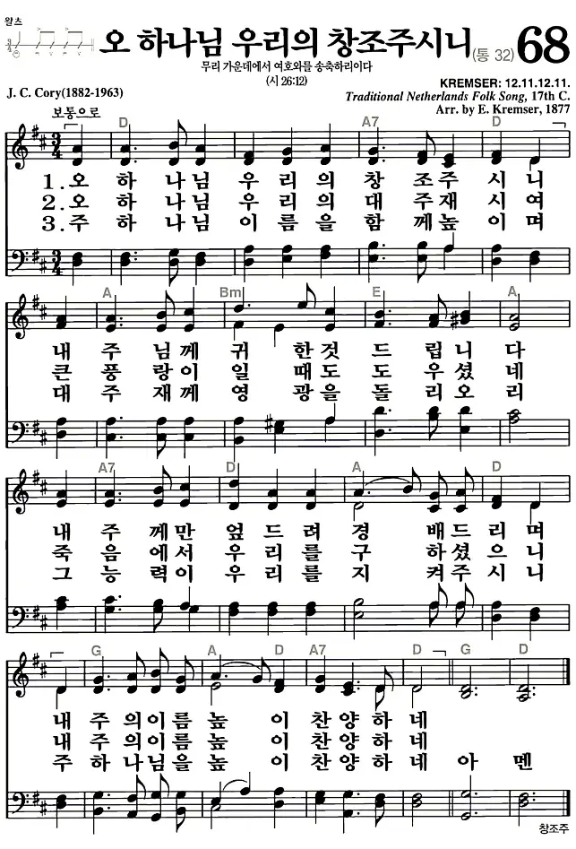 새찬송가_악보] 68장 - 오 하나님 우리의 창조주시니 다운로드(고화질/인쇄용)