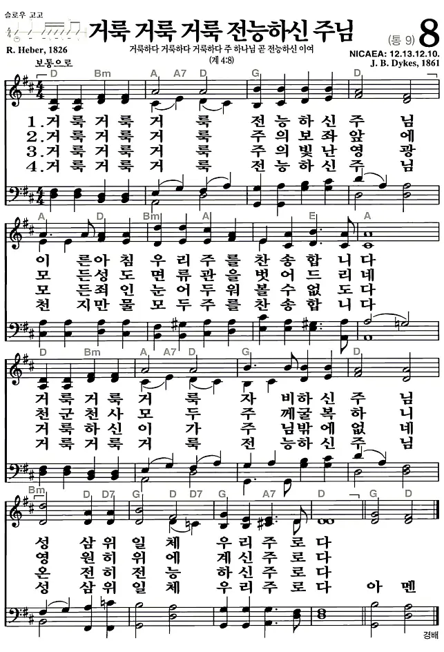 8장 - 거룩 거룩 거룩 전능하신 주님 찬송가의 고화질 악보입니다.