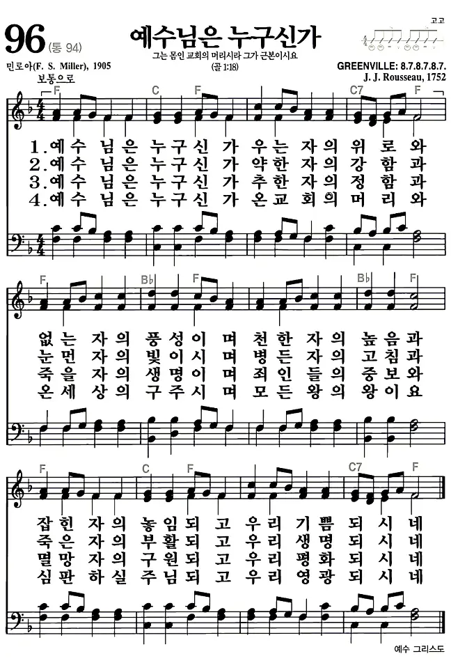 96장 - 예수님은 누구신가 찬송가의 고화질 악보입니다.