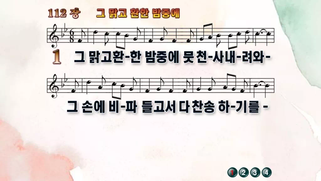 112장 - 그 맑고 환한 밤중에 찬송가의 PPT 악보입니다.
