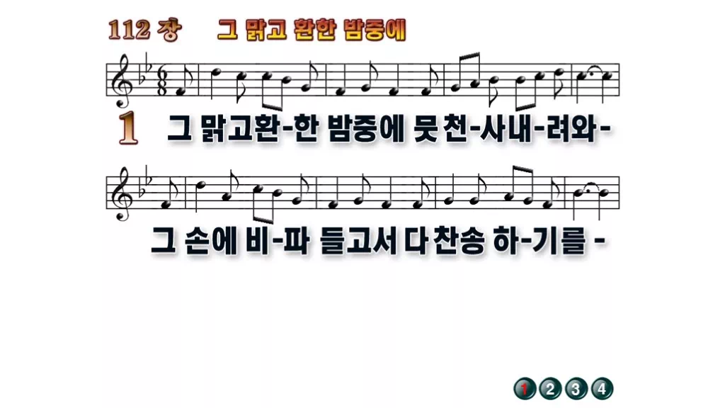 112장 - 그 맑고 환한 밤중에 찬송가의 배경없는 PPT 악보입니다.