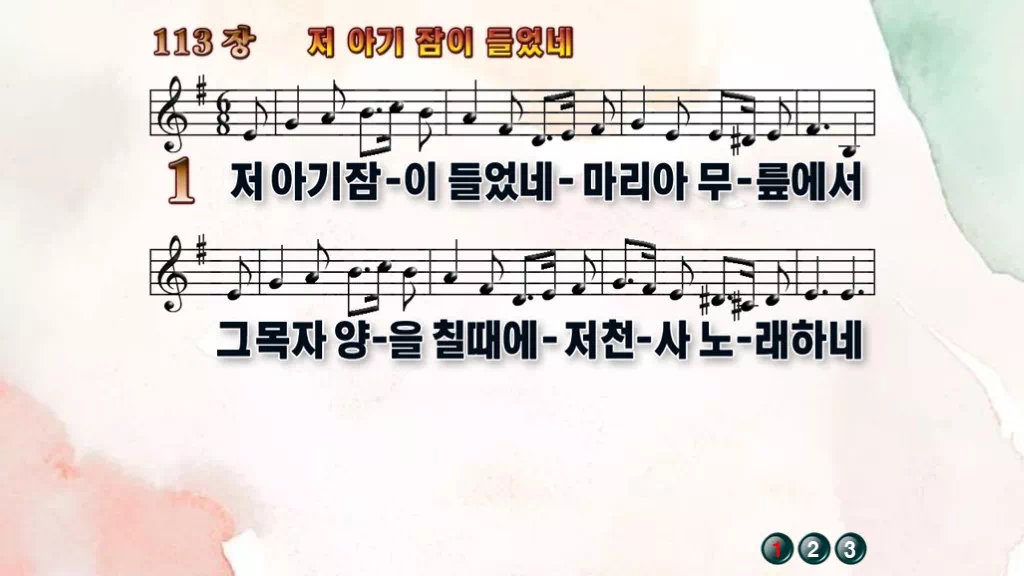 113장 - 저 아기 잠들었네 찬송가의 PPT 악보입니다.