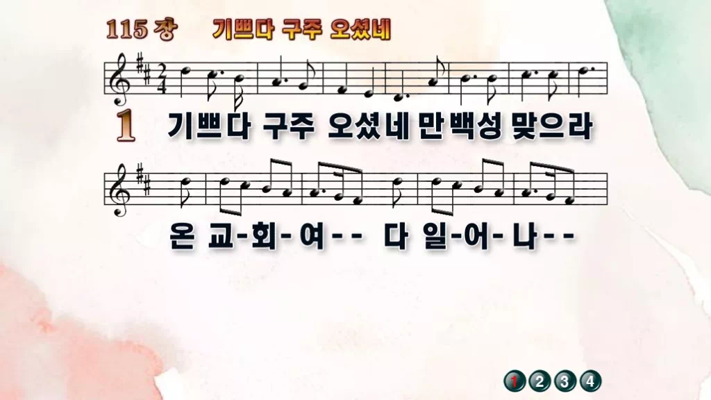 115장 - 기쁘다 구주 오셨네 찬송가의 PPT 악보입니다.