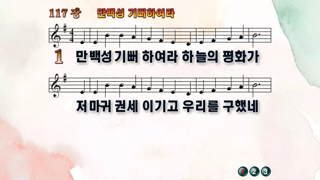 117장 - 만백성 기뻐하여라 찬송가의 PPT 악보입니다.