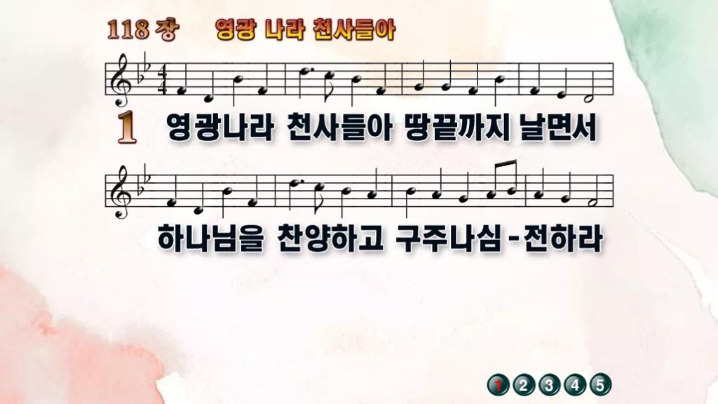 118장 - 영광 나라 천사들아 찬송가의 PPT 악보입니다.