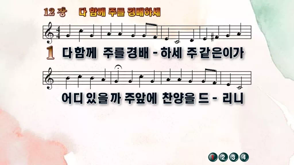 12장 - 다 함께 주를 경배하세 찬송가의 PPT 악보입니다.