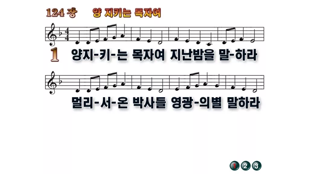 124장 - 양 지키는 목자여 찬송가의 배경없는 PPT 악보입니다.