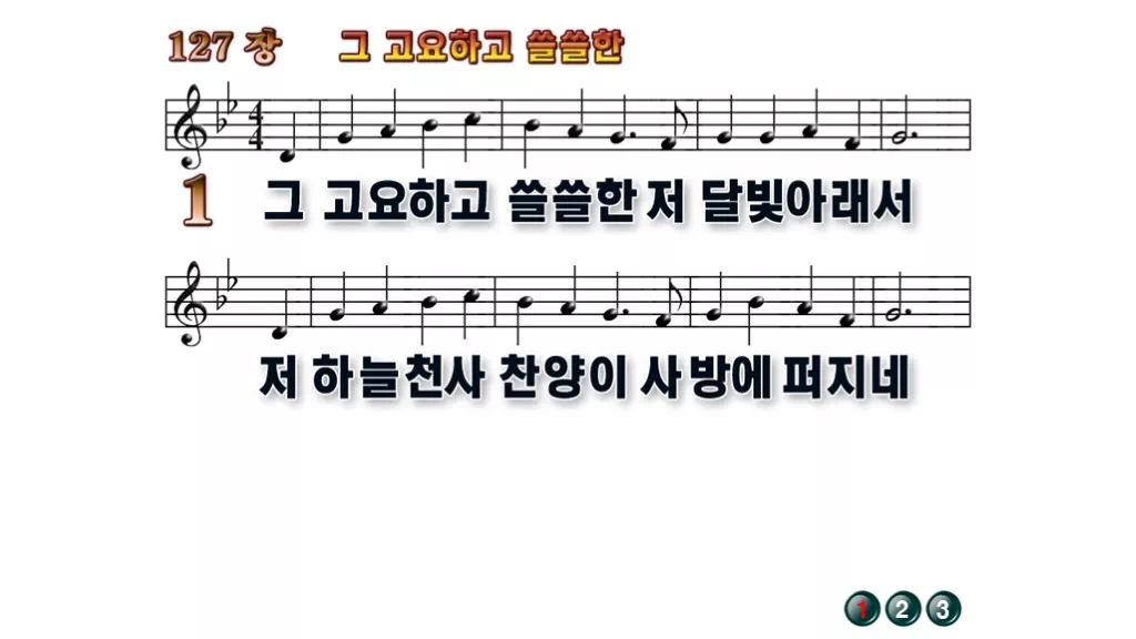 127장 - 그 고요하고 쓸쓸한 찬송가의 배경없는 PPT 악보입니다.