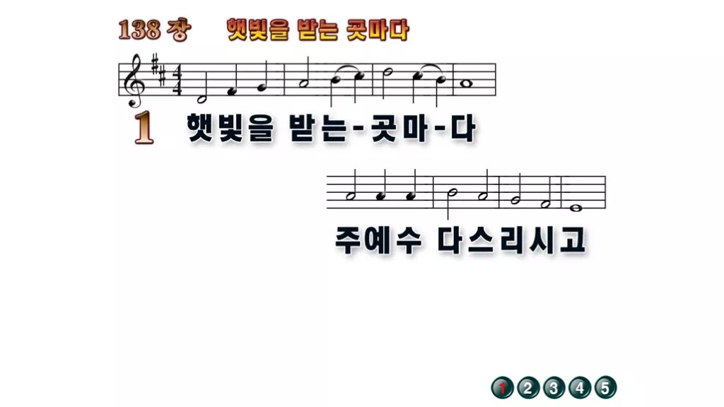 138장 - 햇빛을 받는 곳마다 찬송가의 배경없는 PPT 악보입니다.
