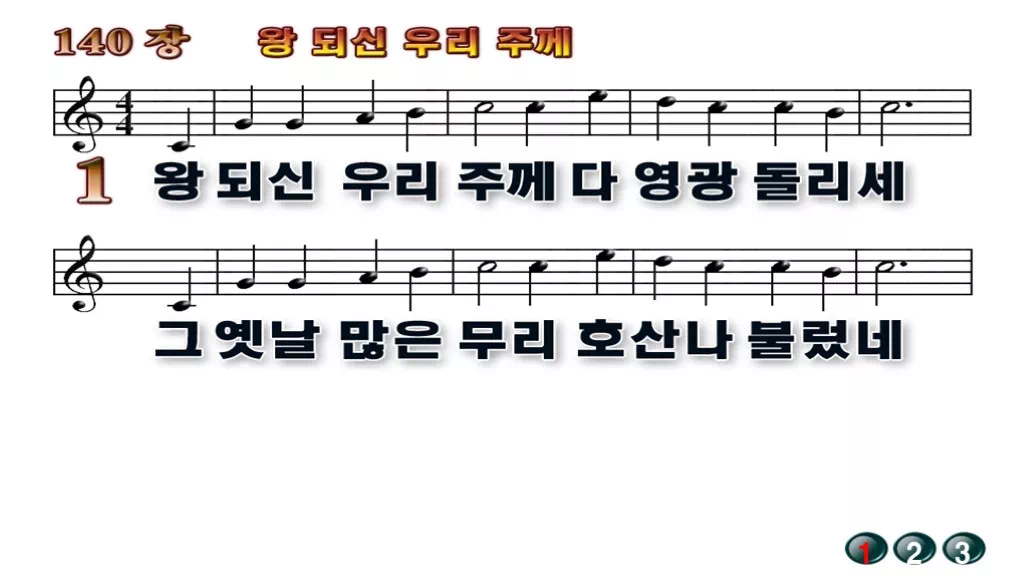 140장 - 왕 되신 우리 주께 찬송가의 배경없는 PPT 악보입니다.