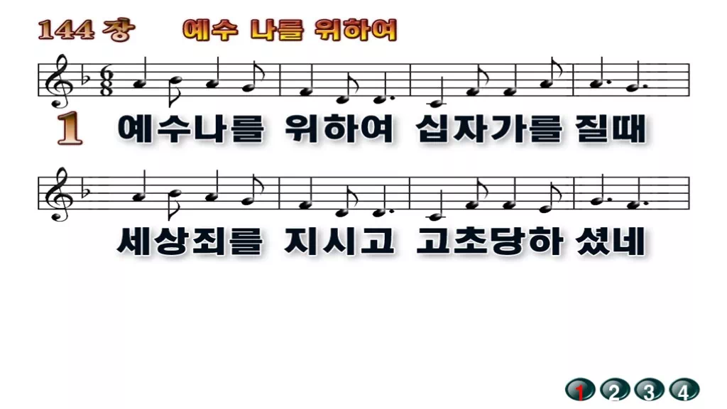 144장 - 예수 나를 위하여 찬송가의 배경없는 PPT 악보입니다.