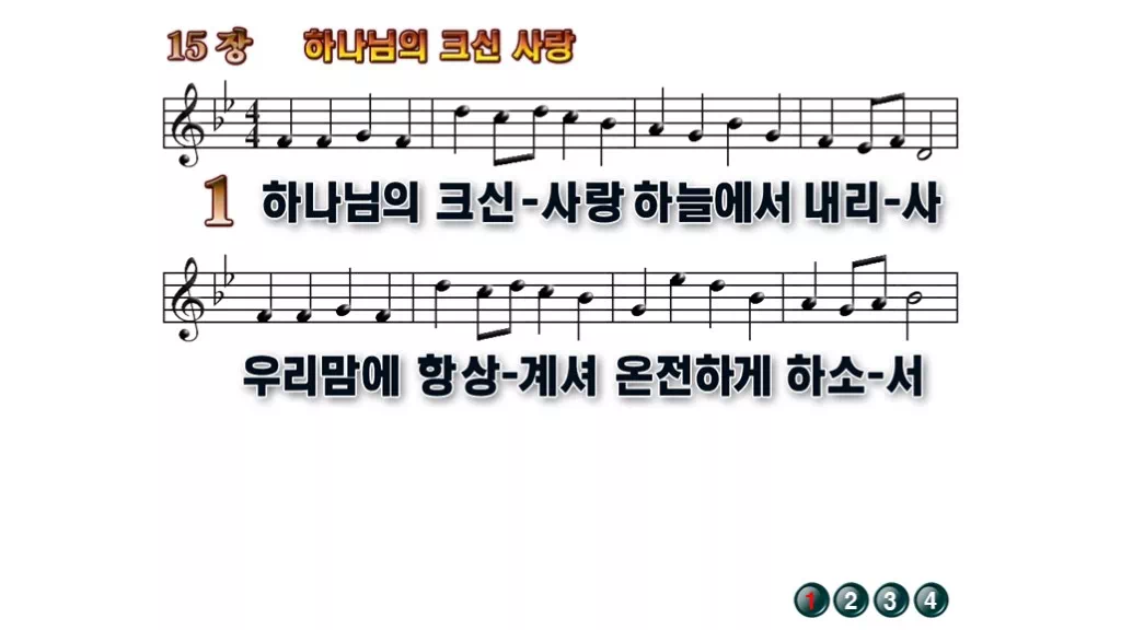 15장 - 하나님의 크신 사랑 찬송가의 배경없는 PPT 악보입니다.