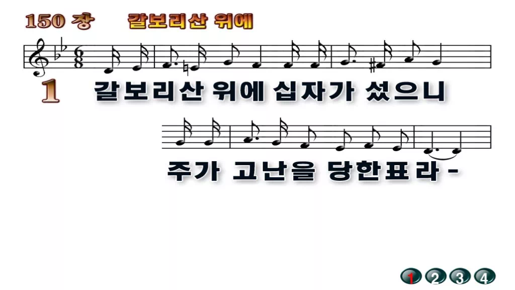 150장 - 갈보리산 위에 찬송가의 배경없는 PPT 악보입니다.