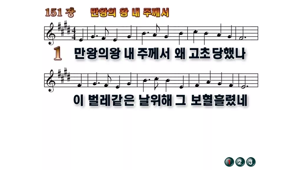 151장 - 만왕의 왕 주께서 찬송가의 배경없는 PPT 악보입니다.