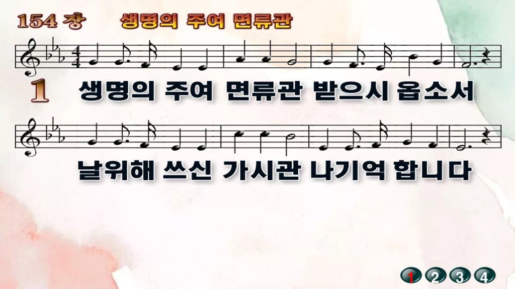 154장 - 생명의 주여 면류관 찬송가의 PPT 악보입니다.