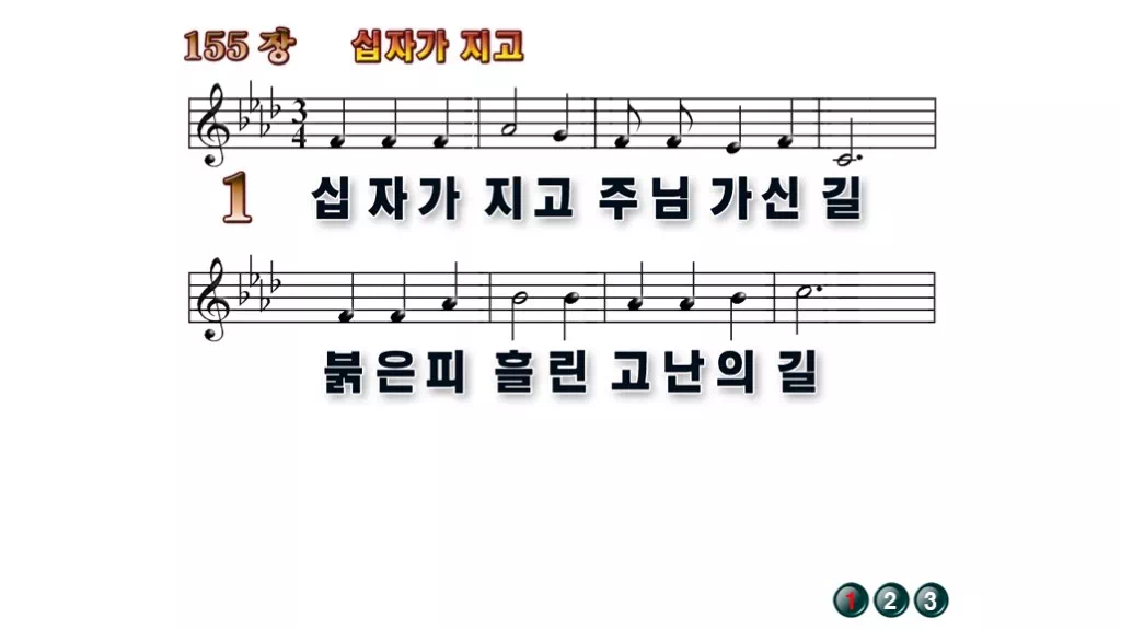 155장 - 십자가 지고 찬송가의 배경없는 PPT 악보입니다.