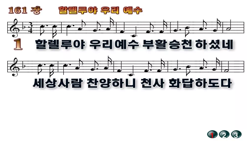 161장 - 할렐루야 우리 예수 찬송가의 배경없는 PPT 악보입니다.
