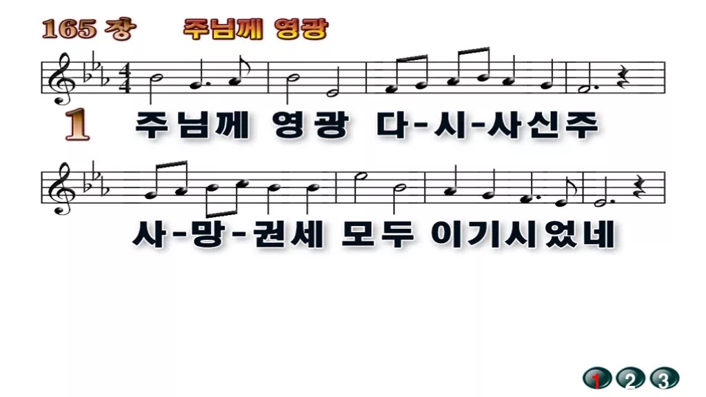 165장 - 주님께 영광 찬송가의 배경없는 PPT 악보입니다.