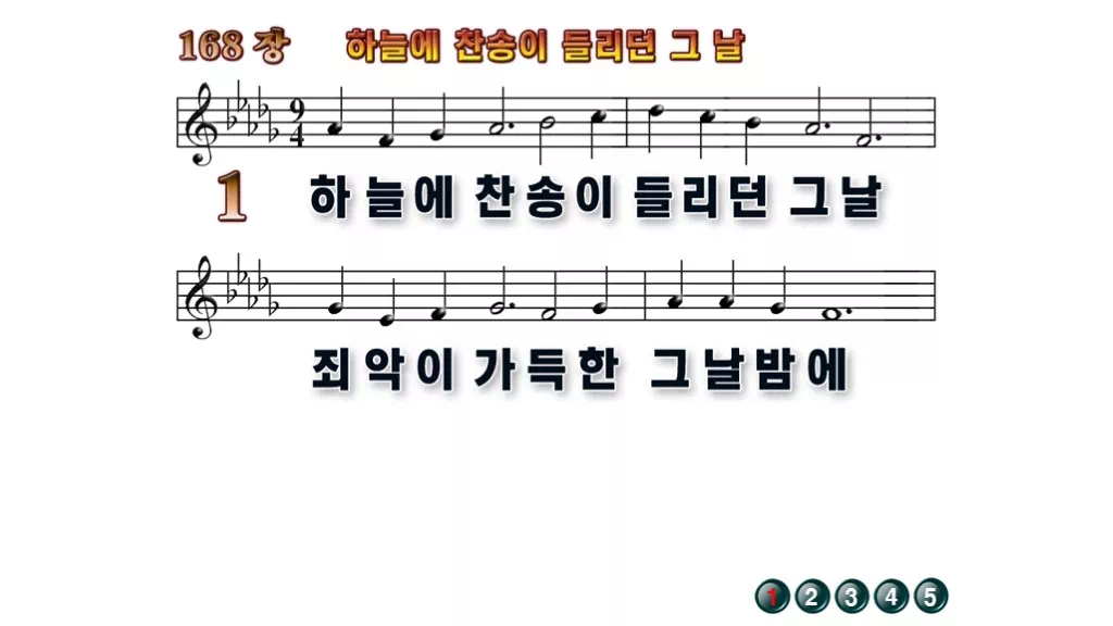 168장 - 하늘에 찬송이 들리던 그 날 찬송가의 배경없는 PPT 악보입니다.