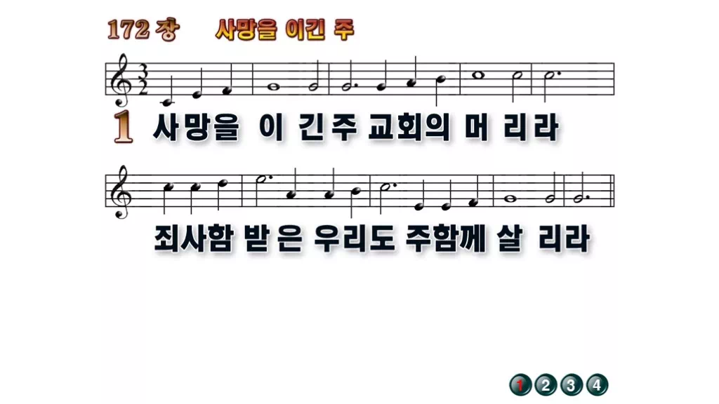 172장 - 사망을 이긴 주 찬송가의 배경없는 PPT 악보입니다.
