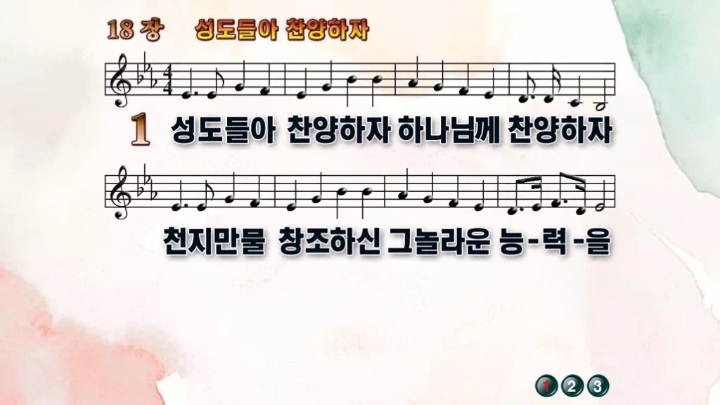 18장 - 성도들아 찬양하자 찬송가의 PPT 악보입니다.