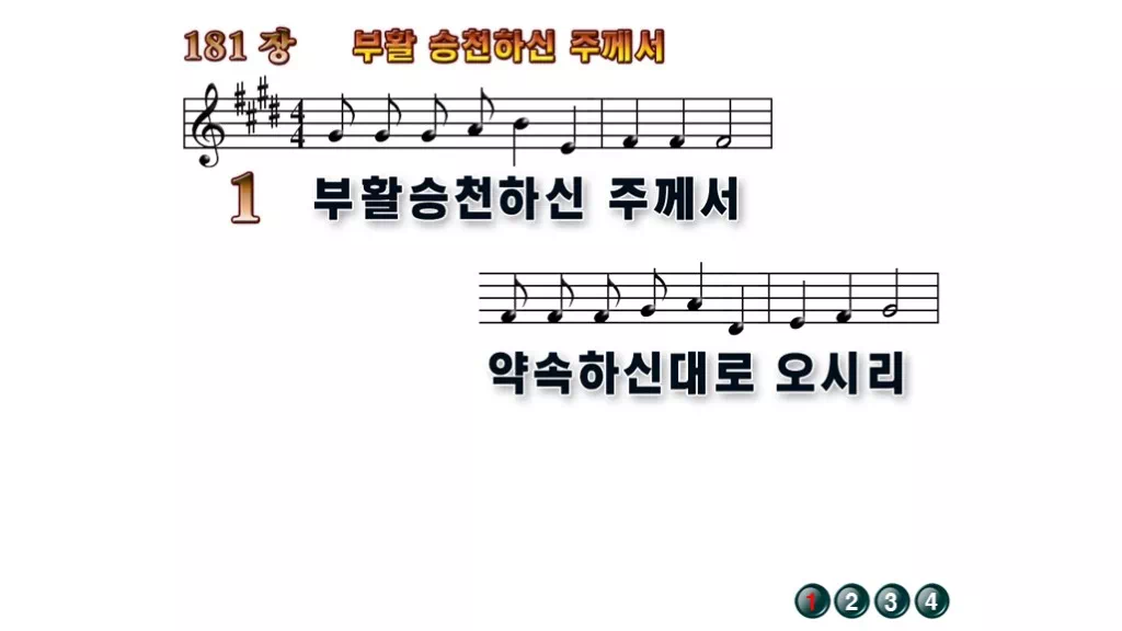 181장 - 부활 승천하신 주께서 찬송가의 배경없는 PPT 악보입니다.