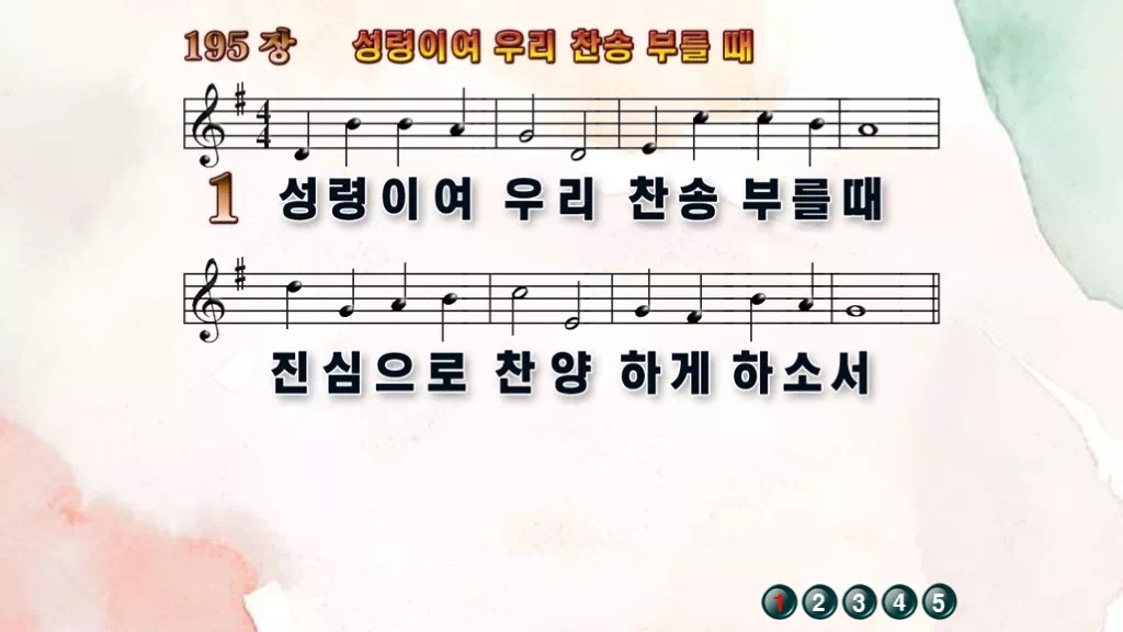 195장 - 성령이여 우리 찬송 부를 때 찬송가의 PPT 악보입니다.