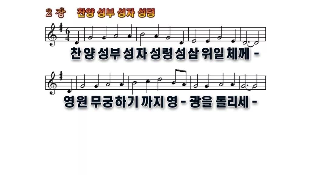 2장 - 찬양 성부 성자 성령 찬송가의 배경없는 PPT 악보입니다.