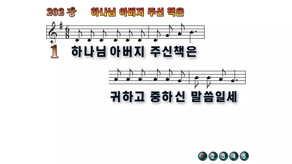 202장 - 하나님 아버지 주신 책은 찬송가의 배경없는 PPT 악보입니다.
