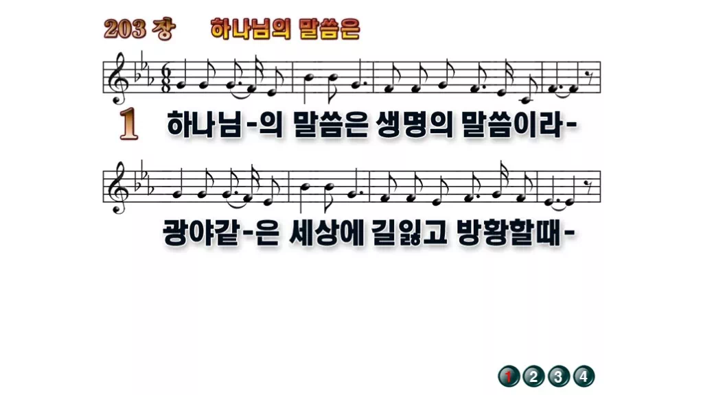 203장 - 하나님의 말씀은 찬송가의 배경없는 PPT 악보입니다.