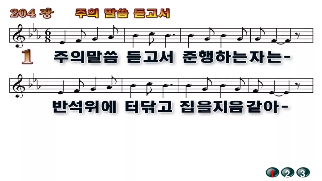 204장 - 주의 말씀 듣고서 찬송가의 배경없는 PPT 악보입니다.