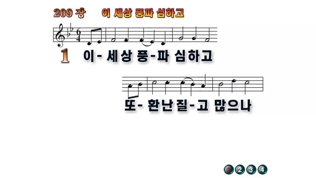 209장 - 이 세상 풍파 심하고 찬송가의 배경없는 PPT 악보입니다.