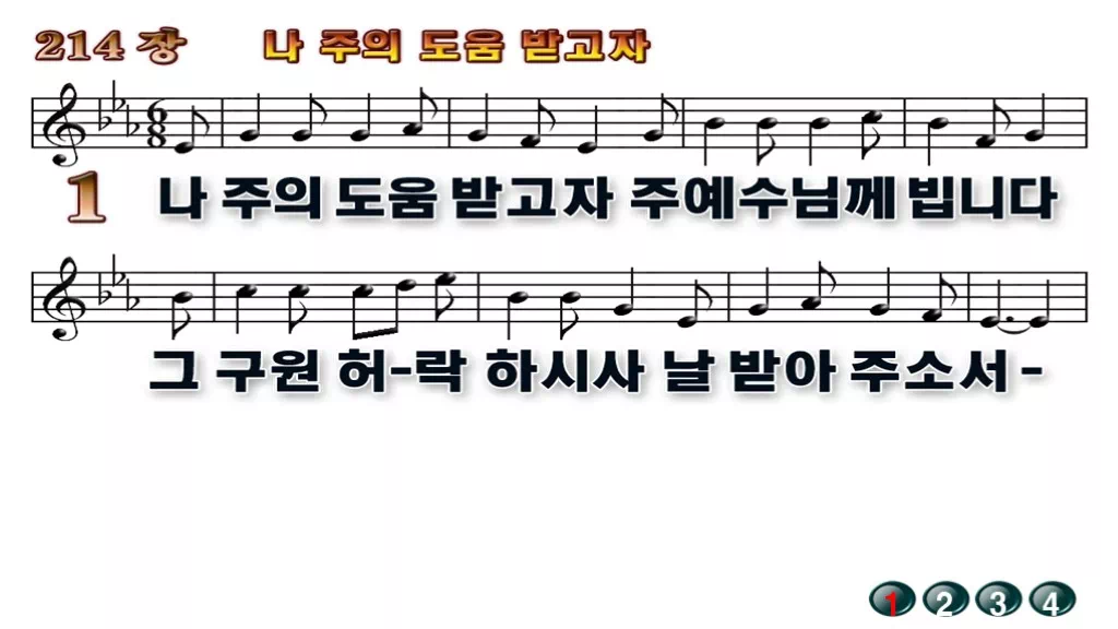 214장 - 나 주의 도움 받고자 찬송가의 배경없는 PPT 악보입니다.